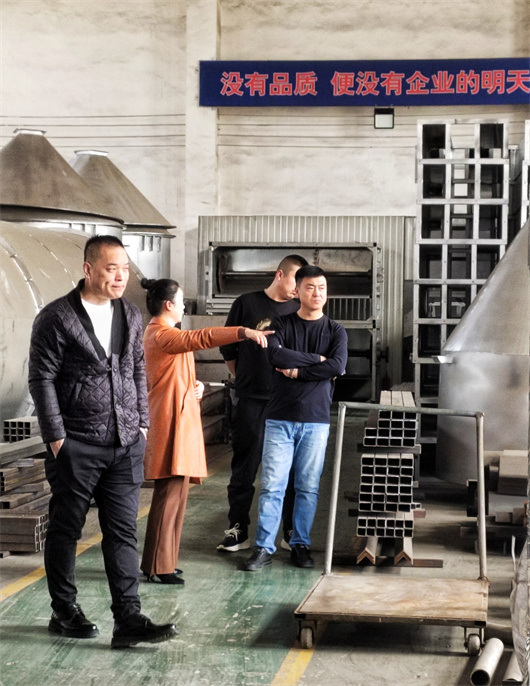 馬總、于經(jīng)理帶領(lǐng)客戶參觀考察了玉米壓片機(jī)設(shè)備制造車間,客戶實(shí)地考察制造蒸汽玉米壓片機(jī)設(shè)備的用料和部件工藝,通過現(xiàn)場考察和交流,客戶對玉米壓片機(jī)設(shè)備有了更為直觀的了解。